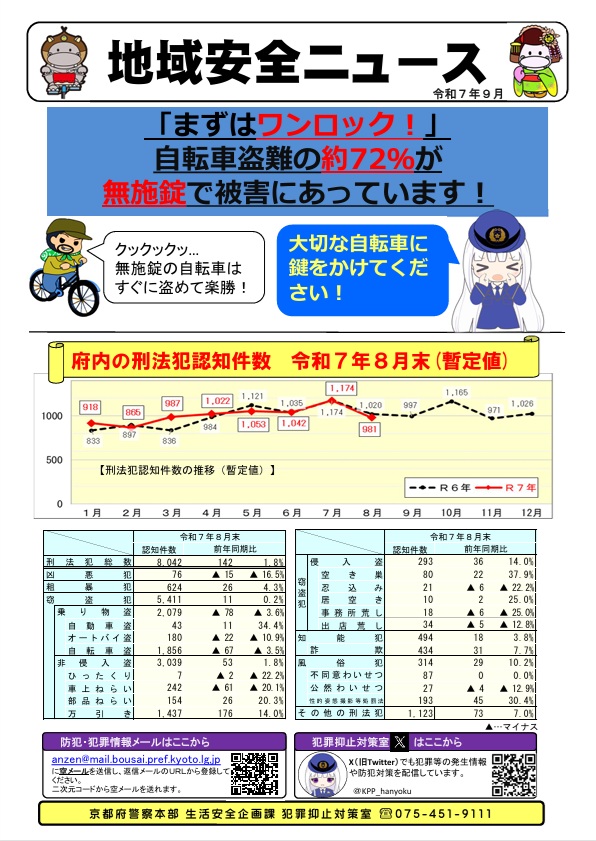 【右京区】右京地域安全ニュース(令和7年9月17日配信) 【右京区】右京地域安全ニュース(令和7年9月26日配信)