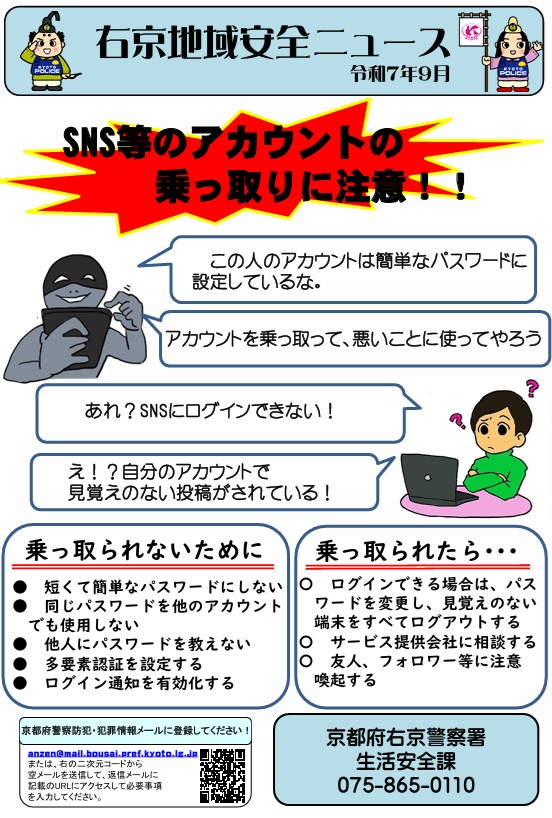 【右京区】右京地域安全ニュース(令和7年9月26日配信)