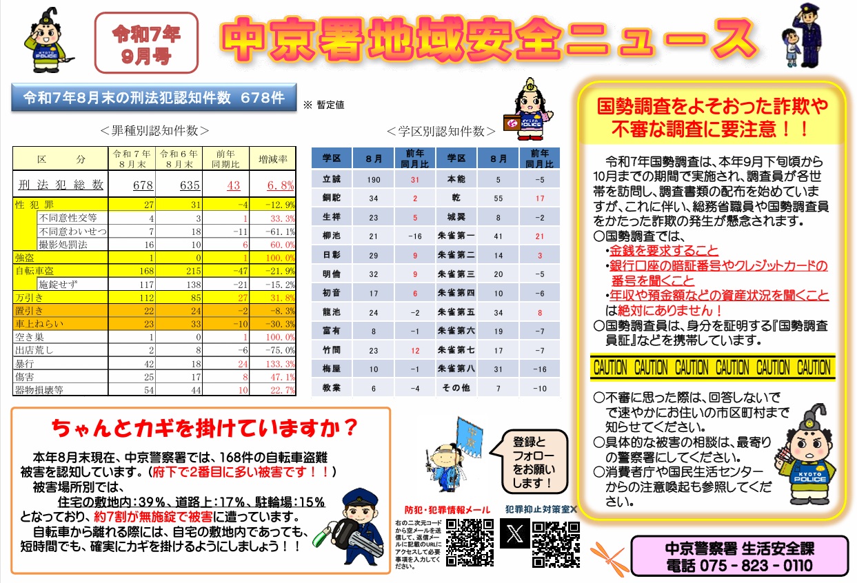 【中京区】中京署地域安全ニュース(令和7年9月29日配信)