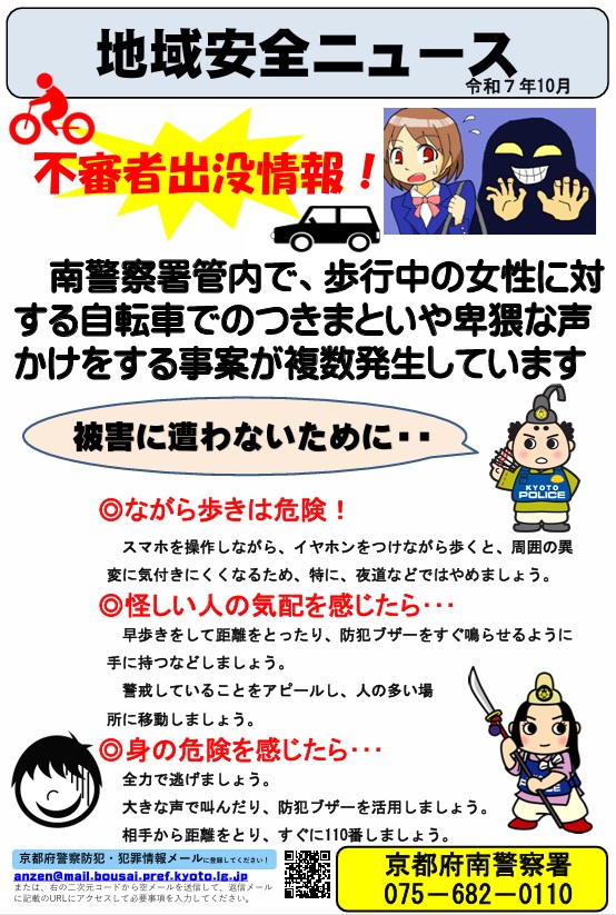 【中京区】中京署地域安全ニュース(令和7年9月29日配信) 【南区】地域安全ニュース(令和7年10月3日配信)