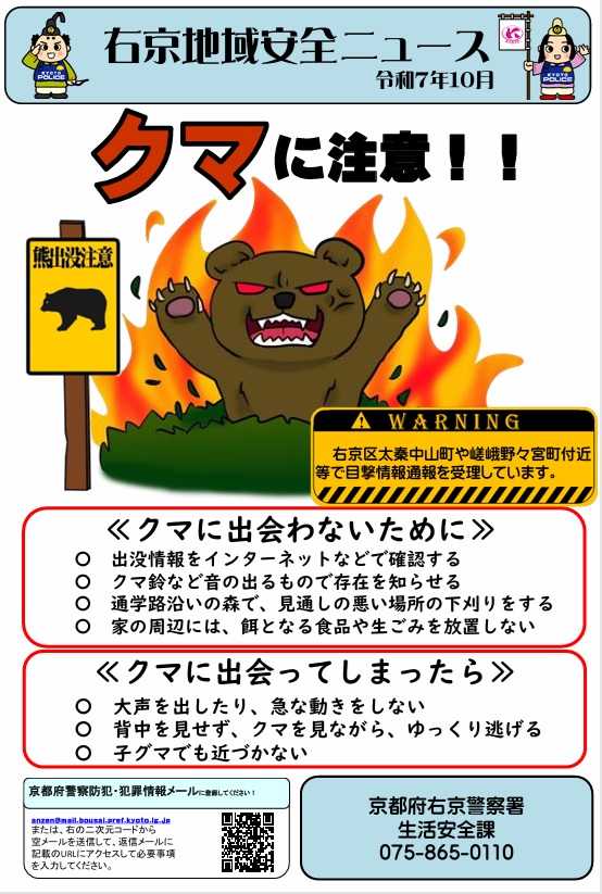 【右京区】右京地域安全ニュース(令和7年10月30日配信)