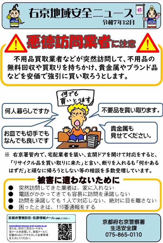 【右京区】右京地域安全ニュース(令和7年12月3日配信)