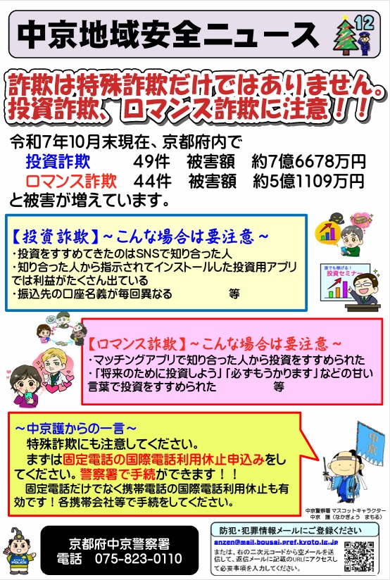 【中京区】中京地域安全ニュース(令和7年12月16日配信)