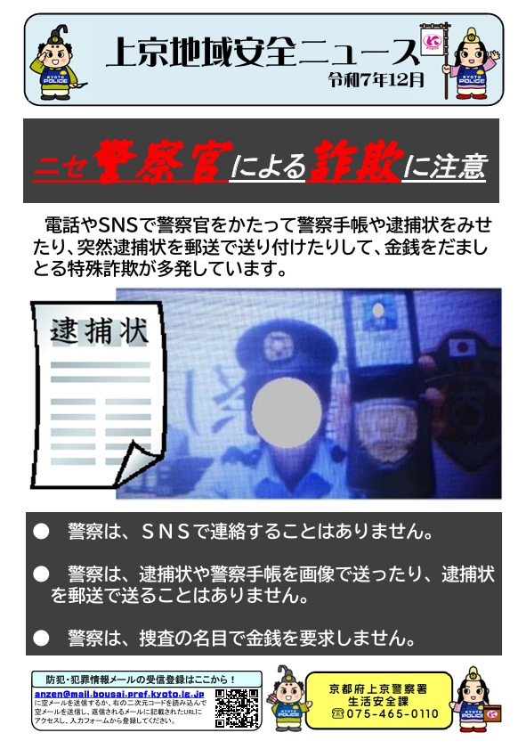 【上京区】上京地域安全ニュース(令和7年12月23日配信)
