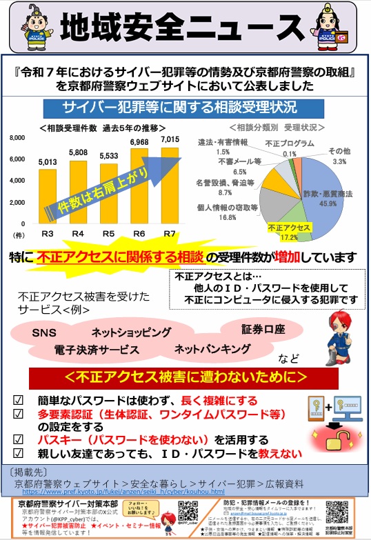 【サイバー対策本部】地域安全ニュース(令和8年2月24日配信) 【右京区】右京地域安全ニュース(令和8年2月25日配信)