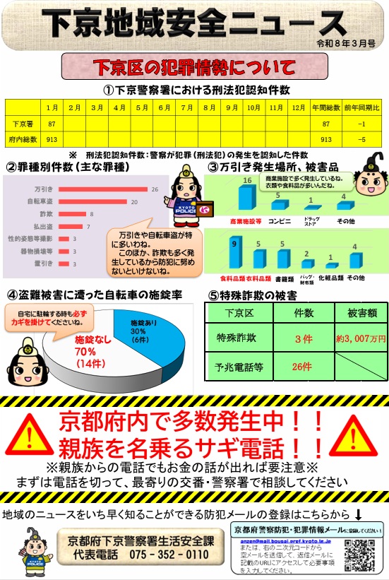 【下京区】下京地域安全ニュース(令和8年3月3日配信)